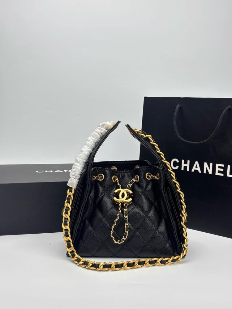 شنطه ميني شانيل 25 لون أسود بسلسلة ذهبي