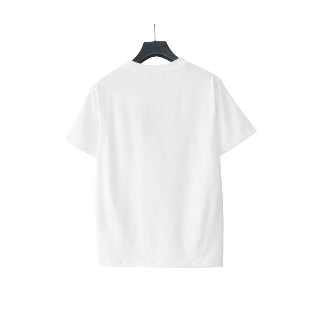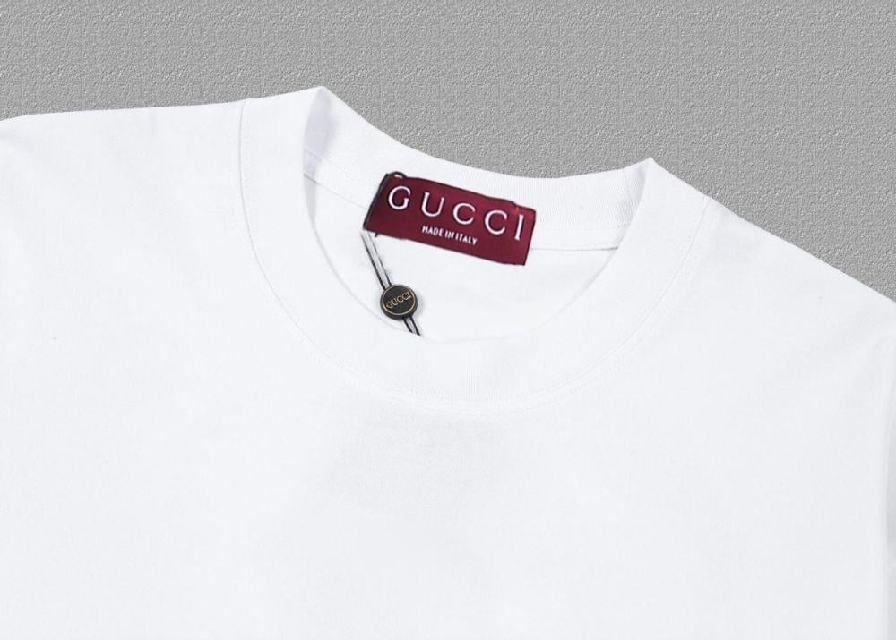تي شرت قوتشي رجالي أبيض بشعار الماركة مطرز ملون