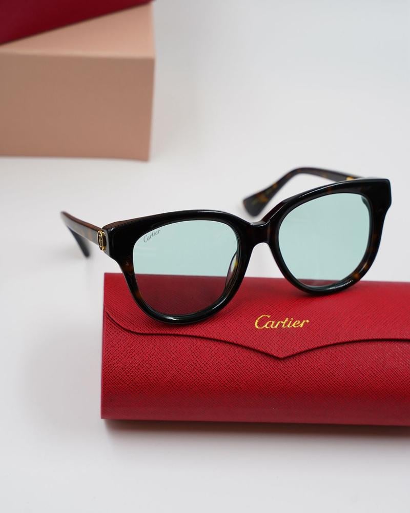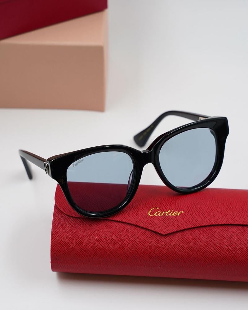 نظارات كارتييه شمسية بإطار دائري لون أسود عدسة شفافة