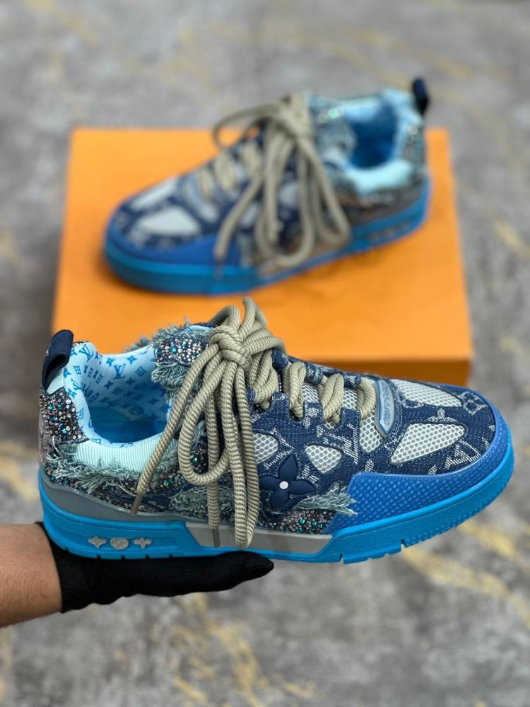 سنيكرز شبابي مميز من لويس فيتون لون أزرق وشعارات الماركة