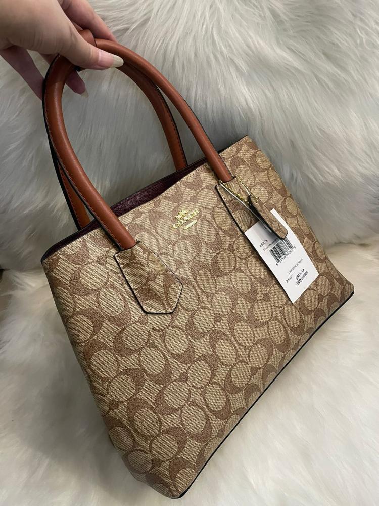 حقيبة يد كاوتش كلاسيكية بمقابض علوية طبعة c لون بيج وعسلي