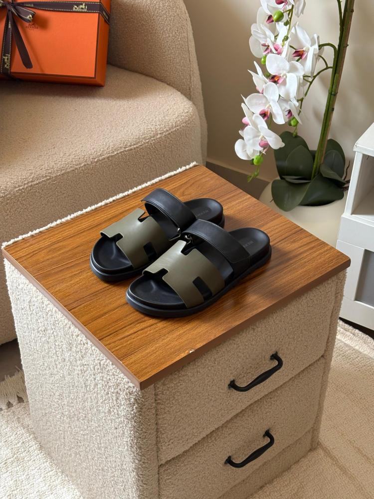 ما باقي شيء! اطلب صندل هيرميس شايبر الزيتي والأسود من eseven store، واستمتع بالرقي في كل خطوة!