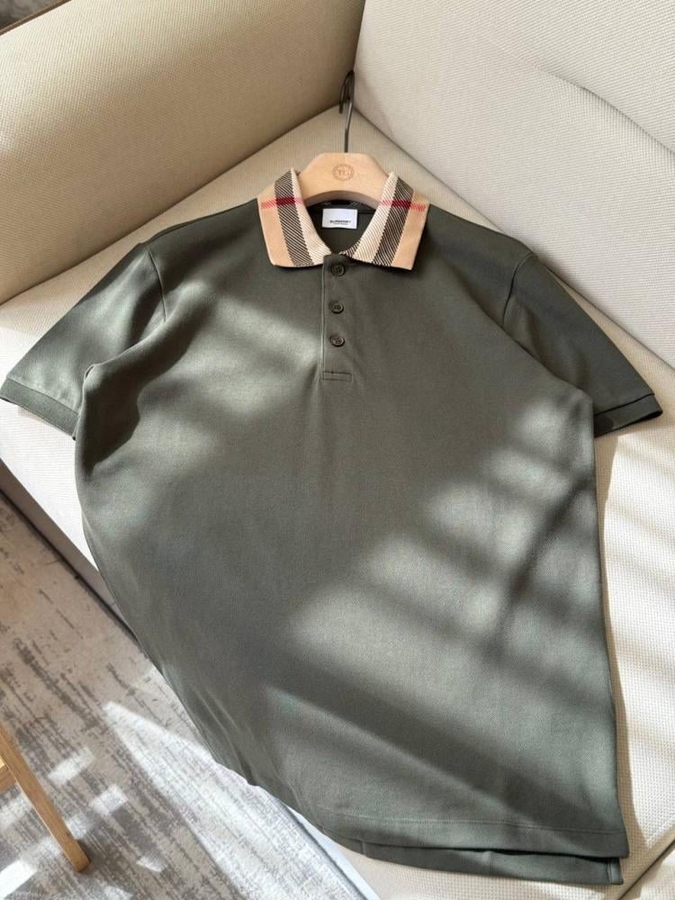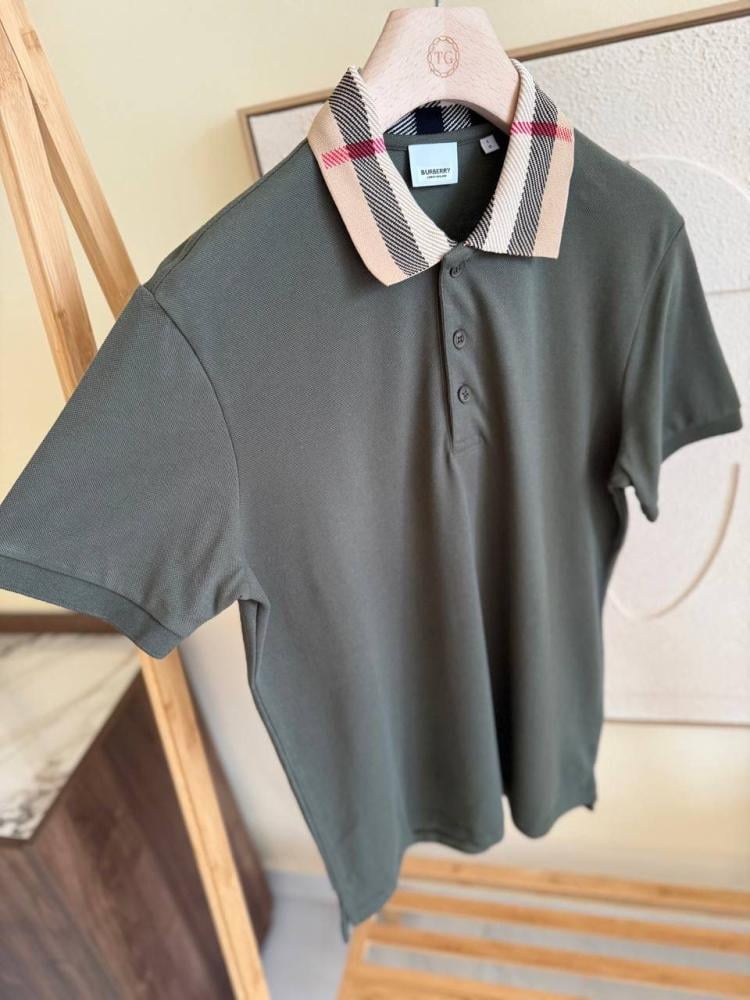 تيشيرت رجالي بربري لون زيتي ياقة بولو كاروهات
