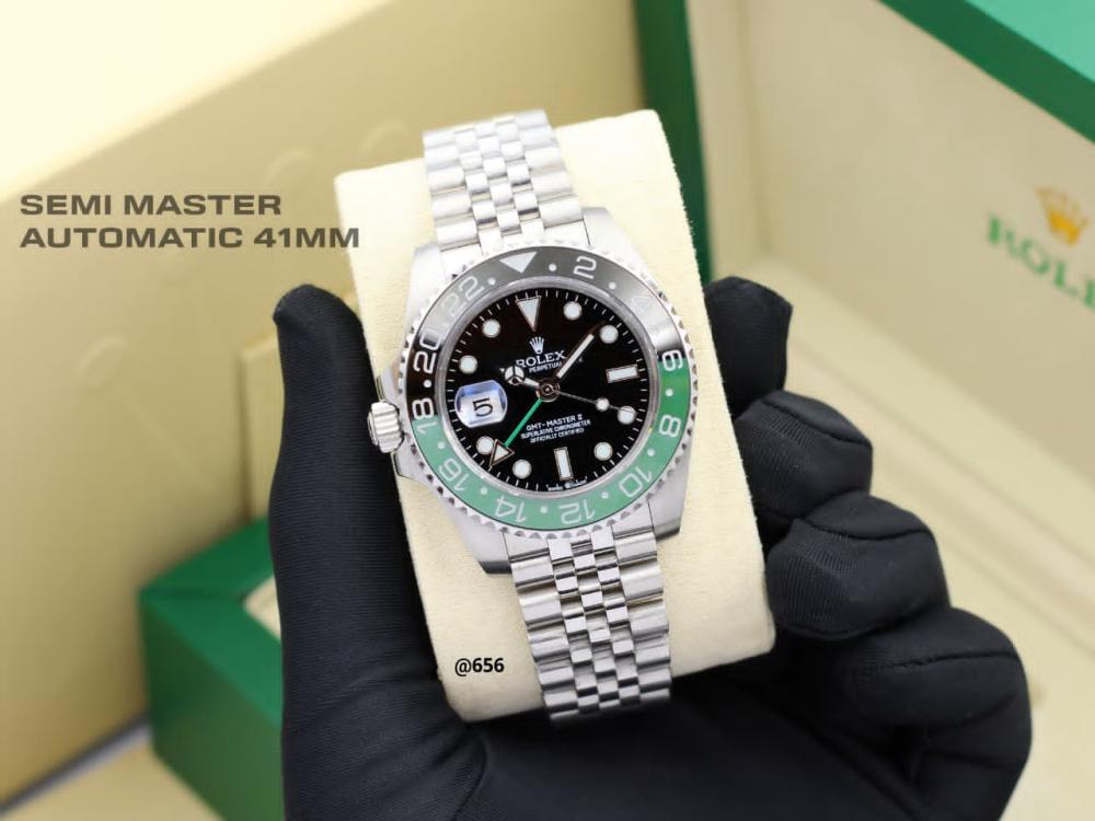 ساعة رجالية روليكس GMT-Master II فضية قرص أخضر واسود