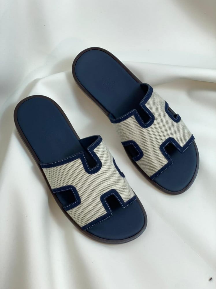اكتشف الأناقة والفخامة في سليبر هيرمس الرجالي باللون البيج الراقي. يتميز هذا السليبر بنعل كحلي يضفي لمسة من الجمال والتفرد.
