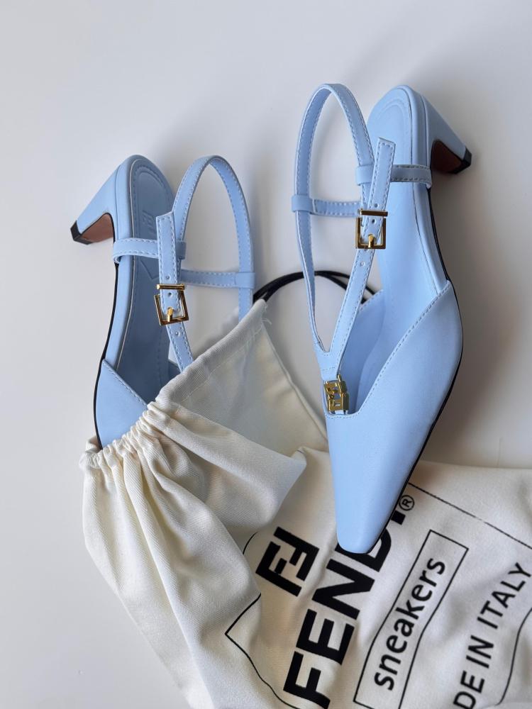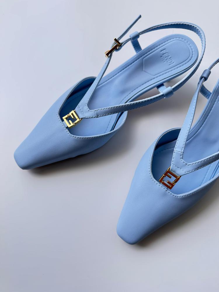 حذاء بكعب منخفض فيندي فولد لون سماوي بحزام خلفي