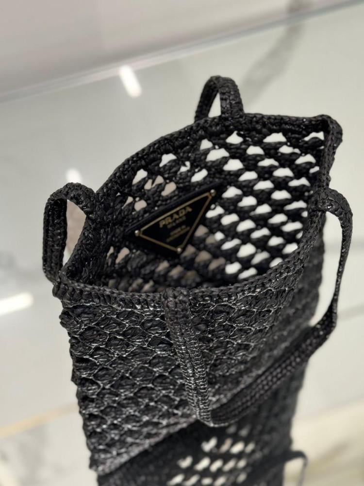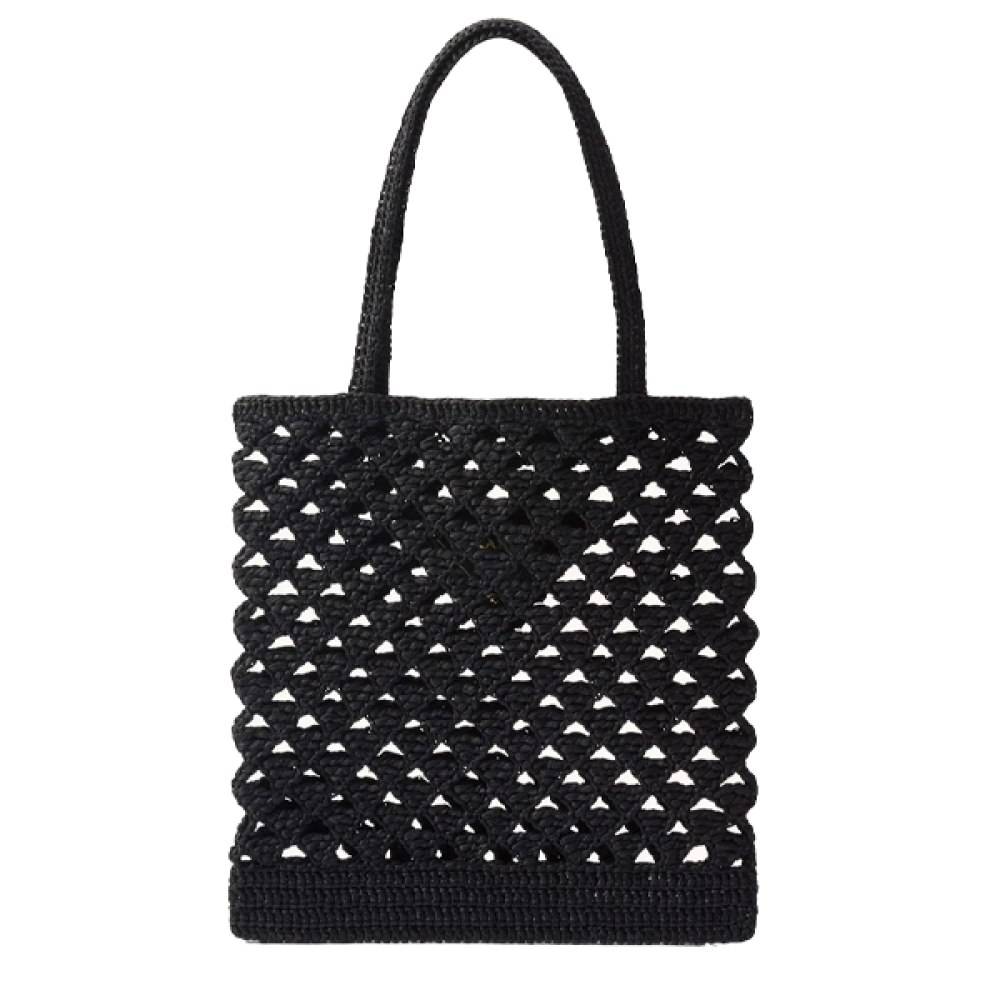 تجربة يوم مشمس على الشاطئ لا تكتمل إلا مع حقيبة الشاطئ الرائعة من برادا بلونها الأسود الأنيق والعالي الجودة.