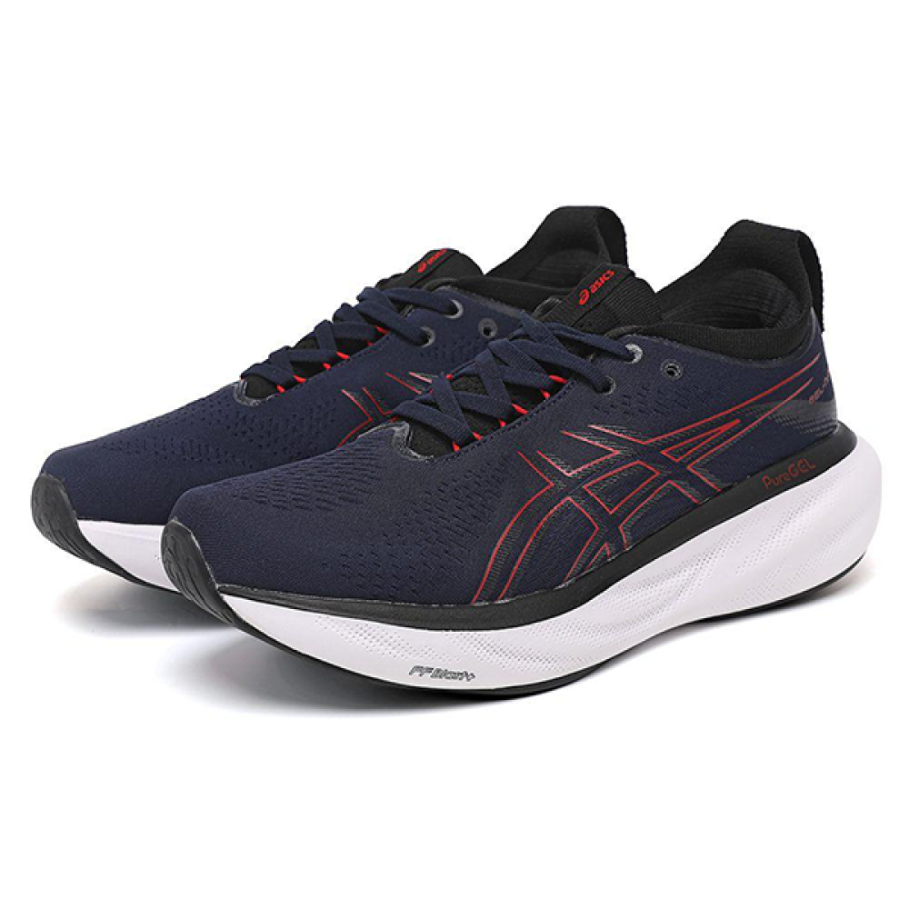 ارتقِ بتجربة الجري الخاصة بك مع حذاء الجري الرجالي Asics Gel-Nimbus 25 بلونه الكحلي الأنيق. يتميز هذا الحذاء بتصميمه العصري وخطوط Asics الحمراء الجانبية، مما يضفي لمسة من الأناقة الكلاسيكية.