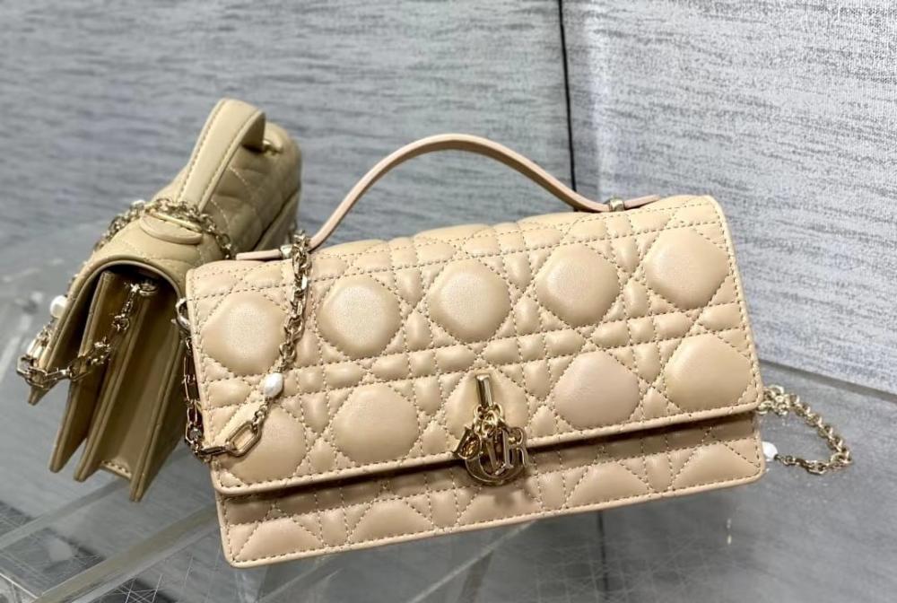 حقيبة جلدية ديور كاروو شنطة بسلسلة كتف لون بيج