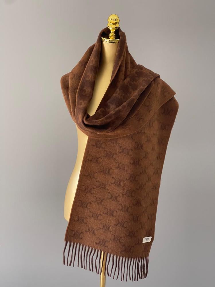 وشاح شتوي سيلين نسائي بشعار الماركة لون بني دافئ