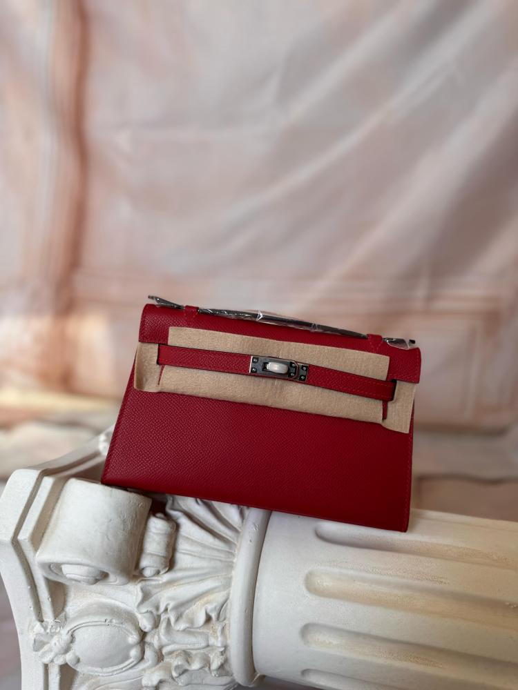 هذي حقيبة باوتش هيرميس كيلي بلون خمري بمعدن فضي، ما هي بس شنطة—هي قطعة فن تتكلمين فيها من غير ولا كلمة. مصنوعة من جلد فاخر ناعم الملمس، وتصميمها مستوحى من الكلاسيك الفرنسي مع لمسة عصرية تناسب ذوق المرأة الخليجية اللي تعشق التميز.