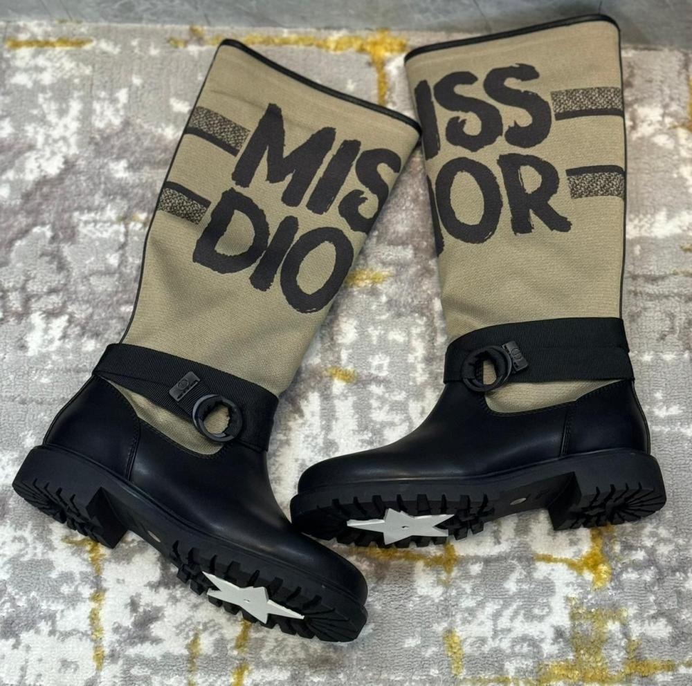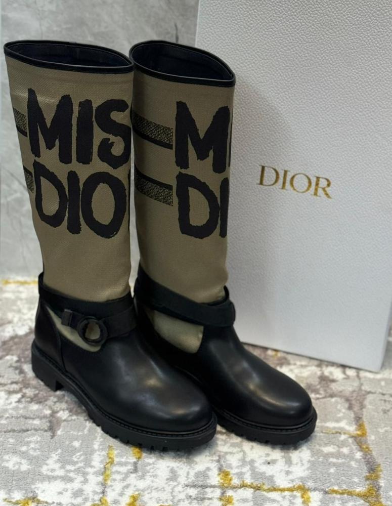 جزمة نسائية ديور ميس ديور رقبة عالية جلد لون أسود وزيتي