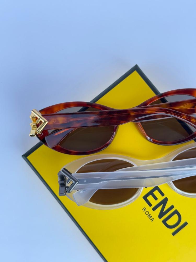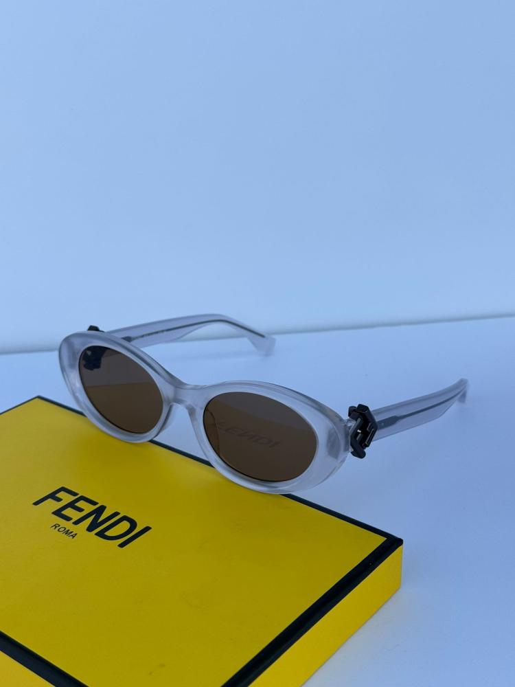 نظارة شمسية فيندي للنساء، بإطار دائري لون فضي وشعار أسود. متوفرة الآن في متجر "أي سفن ستور". هذي النظارة تمزج بين الأناقة والفخامة، وتضيف لمسة عصرية على طلتك.