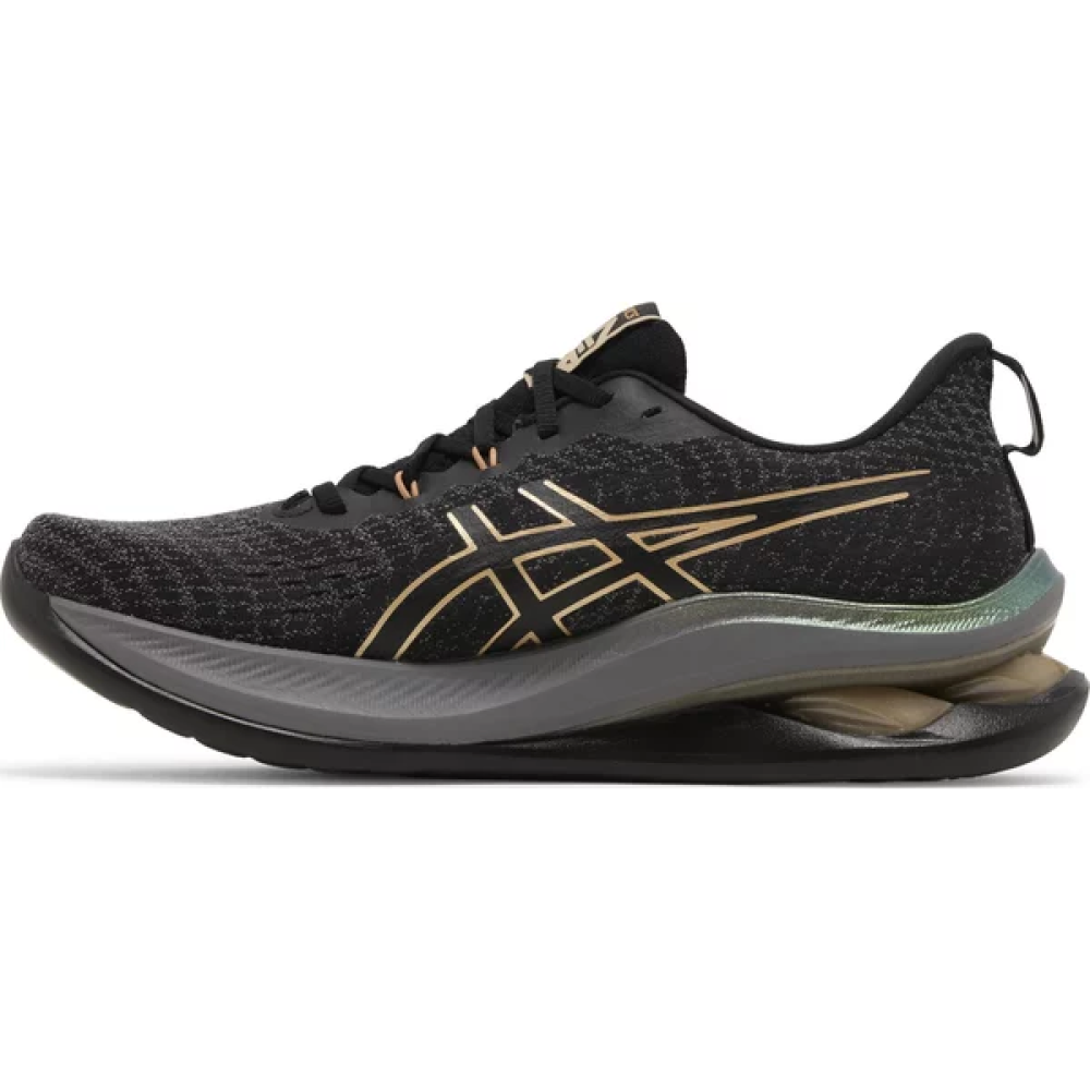يتميز هذا الحذاء بتقنية جل المتطورة التي توفر دعماً فائقاً وراحة استثنائية أثناء الحركة، مما يجعله مناسبًا للأنشطة الرياضية وللاستخدام اليومي. اللون الأسود الأنيق يتناغم مع النعل البيج، ليضفي لمسة عصرية وعملية في آنٍ واحد.