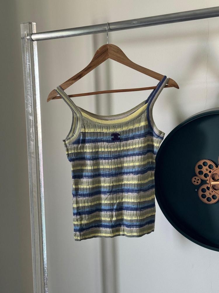 توب بدون أكمام شانيل نسائي نمط مخطط أنيق