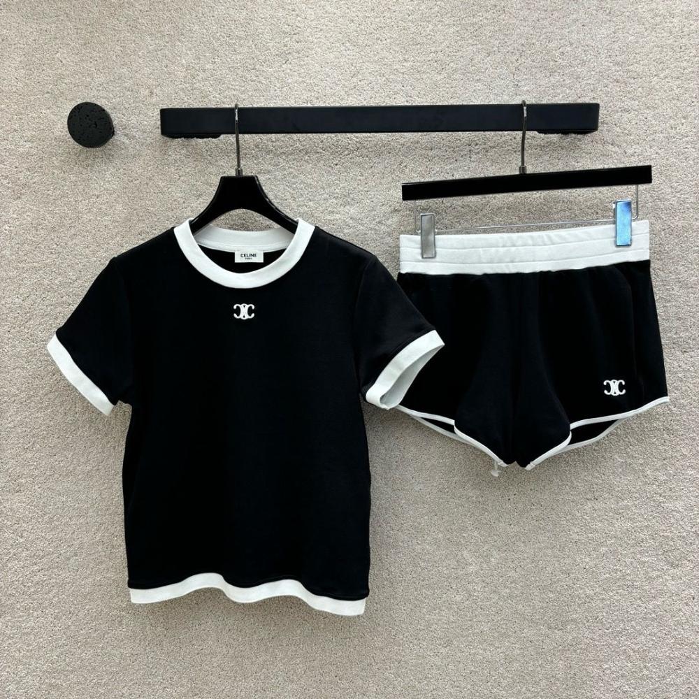 طقم شورت نسائي سيلين تيشيرت مع شورت لون أسود