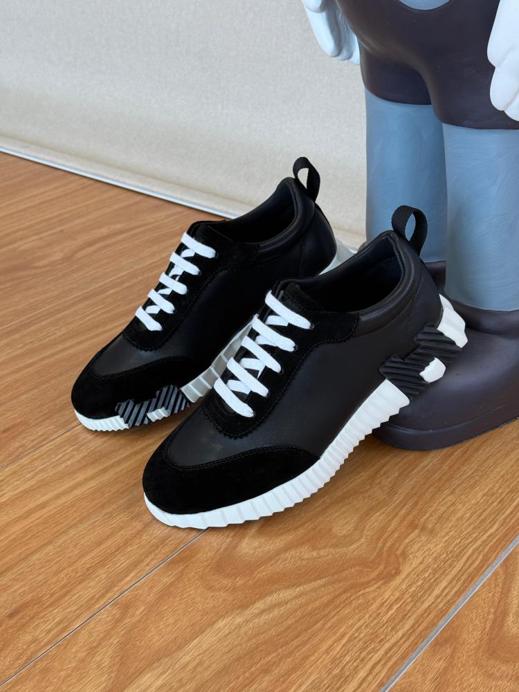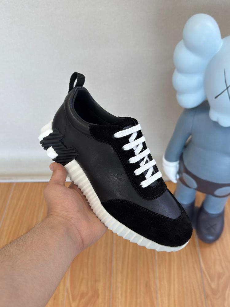 سنيكر هيرمس باونسينج بأربطة، مزيج من الجلد والشمواه باللون الأسود لإطلالة رياضية راقية تعكس ذوقك العملي.