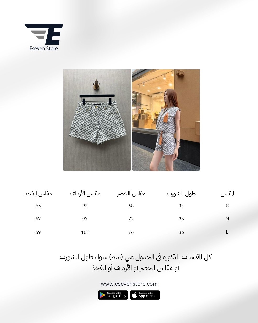 شورت قصير نسائي لويس فيتون مطبوع بشعارات لون ابيض واحمر