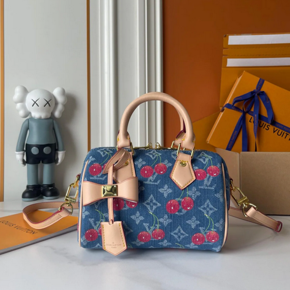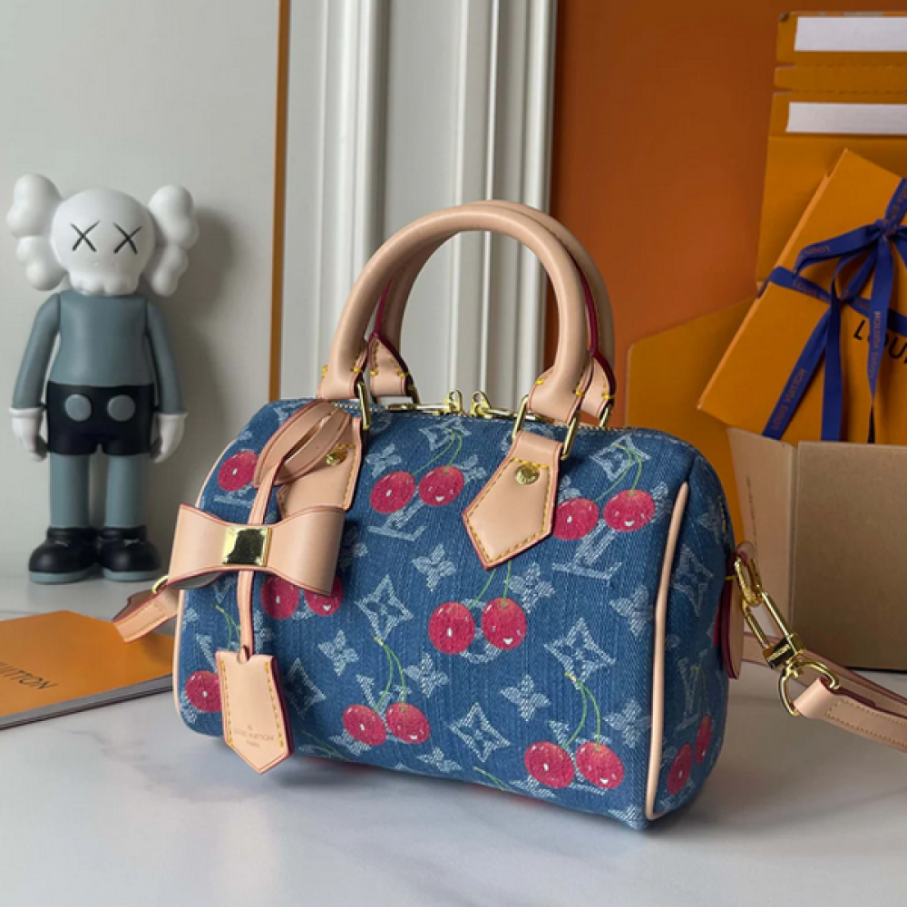 حقيبة يد ميني لويس فيتون سبيدي نقشة كرز مونوغرام أزرق