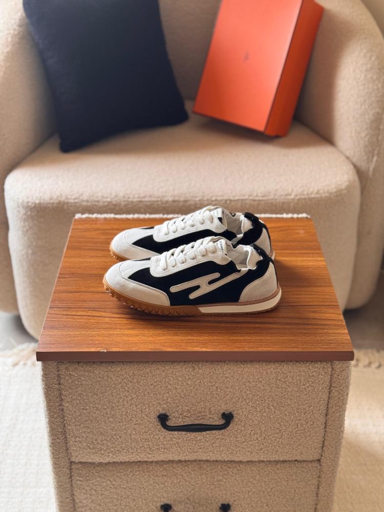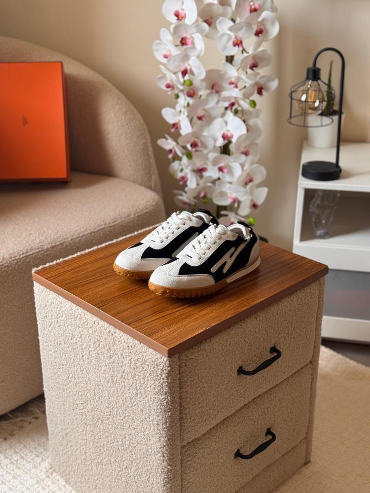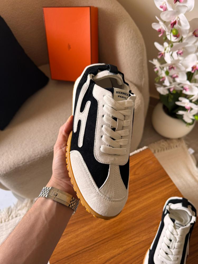 سنيكر إيرمز جيت الرجالي باللونين بلاك وايت الكلاسيكيين. تصميم يجمع بين الأناقة والراحة، مثالي للارتداء اليومي والمناسبات الكاجوال، مع خامة فاخرة توفر دعمًا ومرونة لكل خطوة.