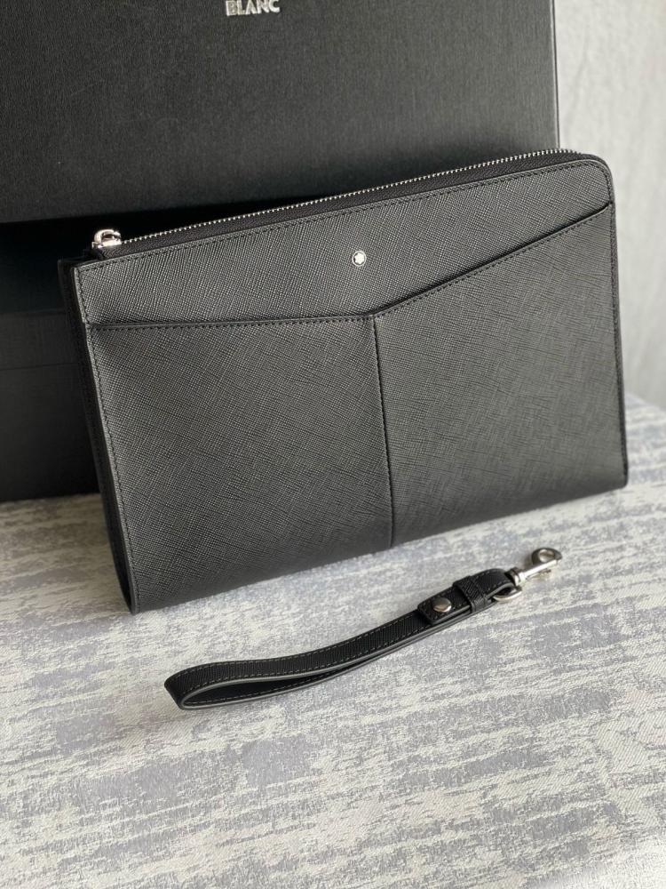 حقيبة يد مون بلان سارتوريال جلد أسود بطبعة سافيانو