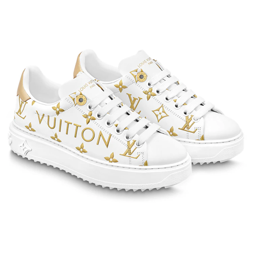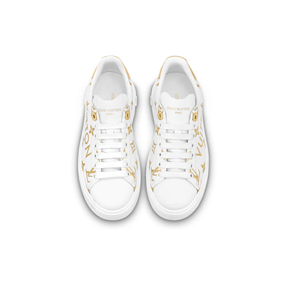 سنيكر للجنسين لويس فيتون تايم أوت أبيض وذهبي مونوغرام بحروف الماركة