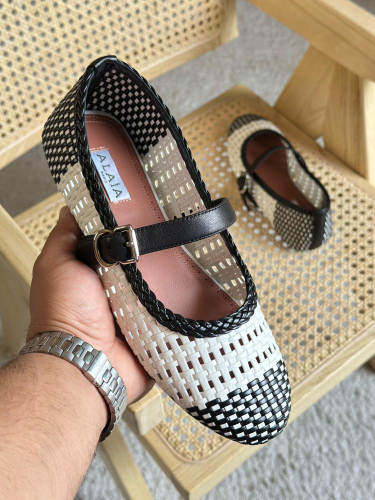 أبرزي أناقتك مع باليرينا الايا النسائية الفلات المفرغة، بتصميم يجمع بين اللونين الأبيض والأسود مع حزام أنيق يمنح القدم ثباتاً وراحة مثالية.