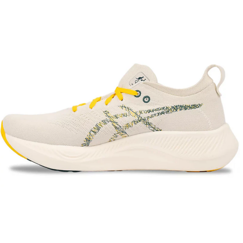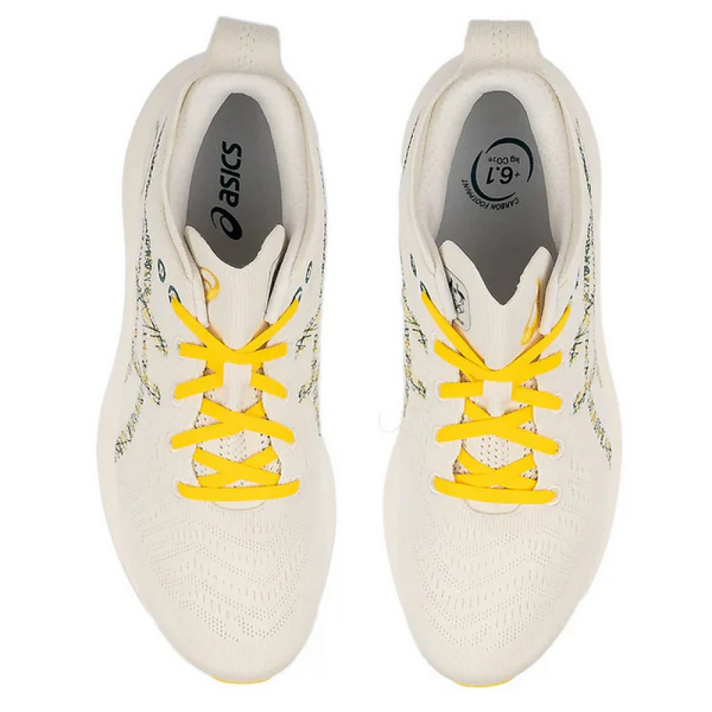 بفضل لونه الأبيض النقي مع لمسات من الأصفر الجريء، يجمع GEL-Nimbus 26 Mirai بين الأناقة والعملية، مما يجعله مثاليًا لمختلف المناسبات سواء في التمرين أو للاستخدام اليومي.
