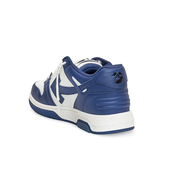 يتميز الحذاء بجزء علوي بلون نيفي وايت، مما يمنحه مظهرًا جذابًا وعصريًا. تفاصيل العلامة التجارية Off-White على الجانب تضيف لمسة من الأناقة والفرادة إلى التصميم.