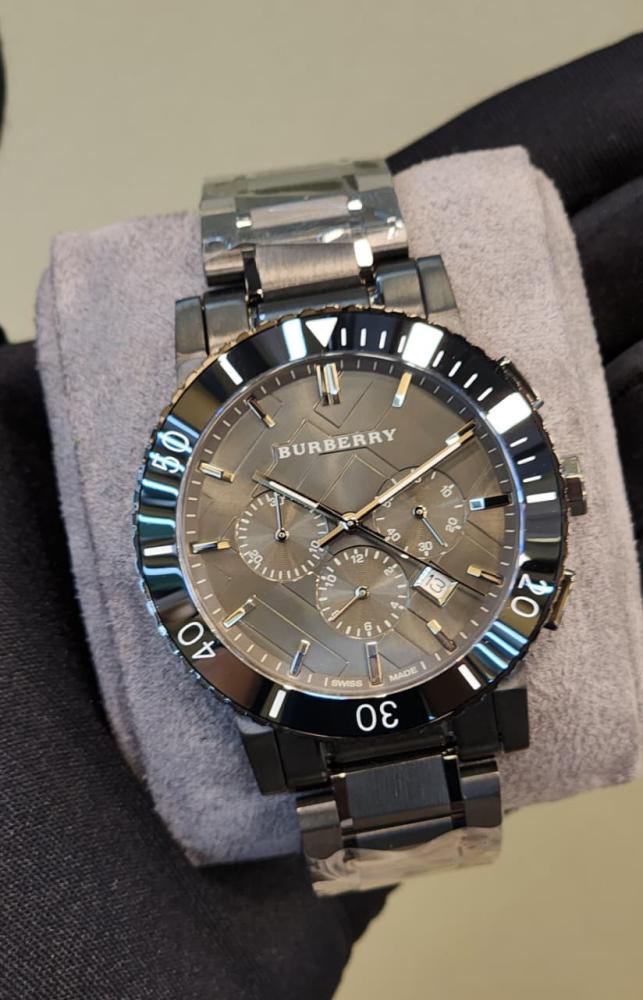 ساعة بربري رجالي ذا سيتي معدن بلون أسود مينا فضي