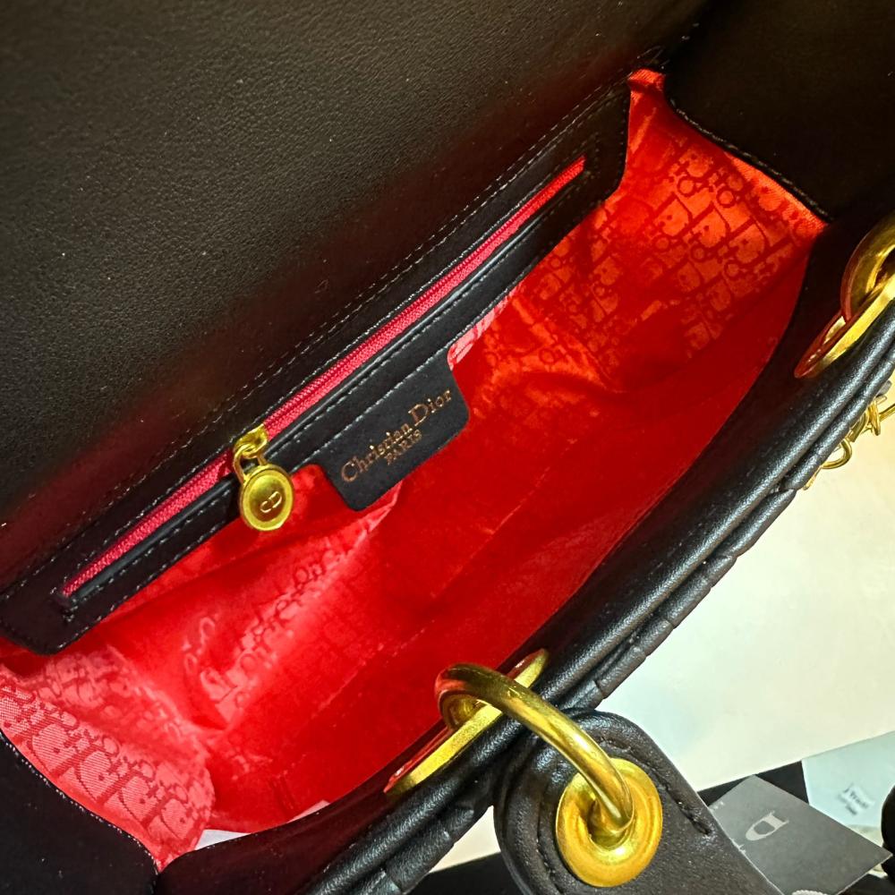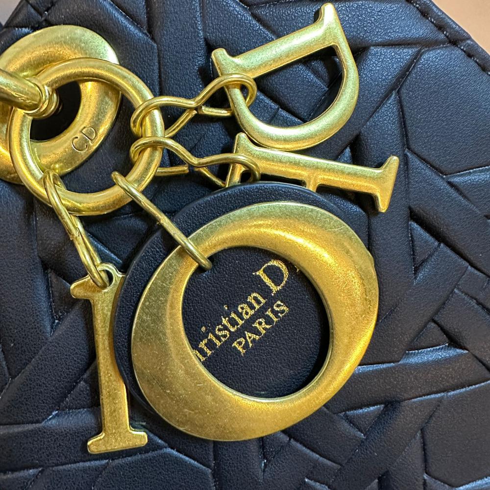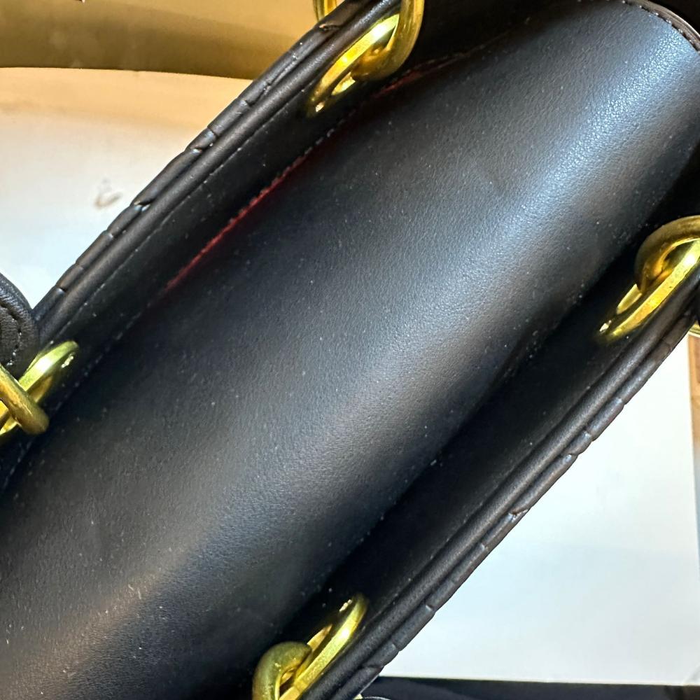 حقيبة يد ليدي ديور بمقابض علوية لون أسود معدن ذهبي