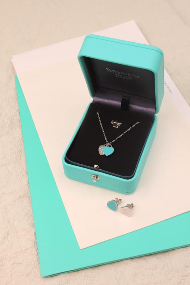 اكسسوار سلسال وحلق تيفاني اند كو قلب بلو سيلفر