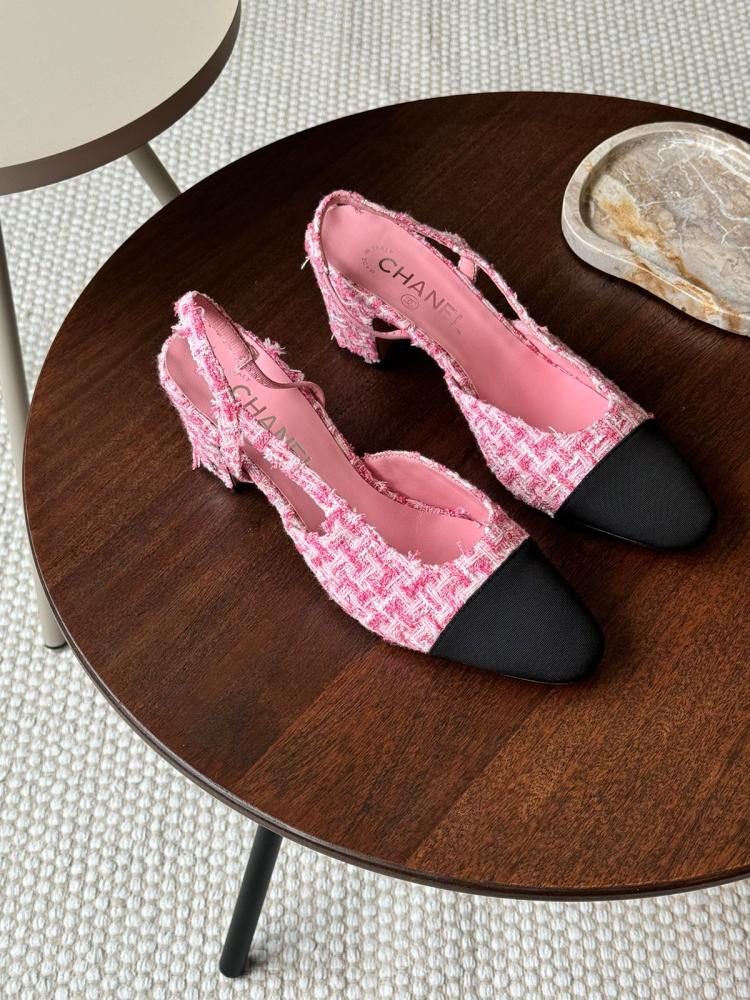 صندل نسائي هيلز شانيل لون بينك مزركش أبيض