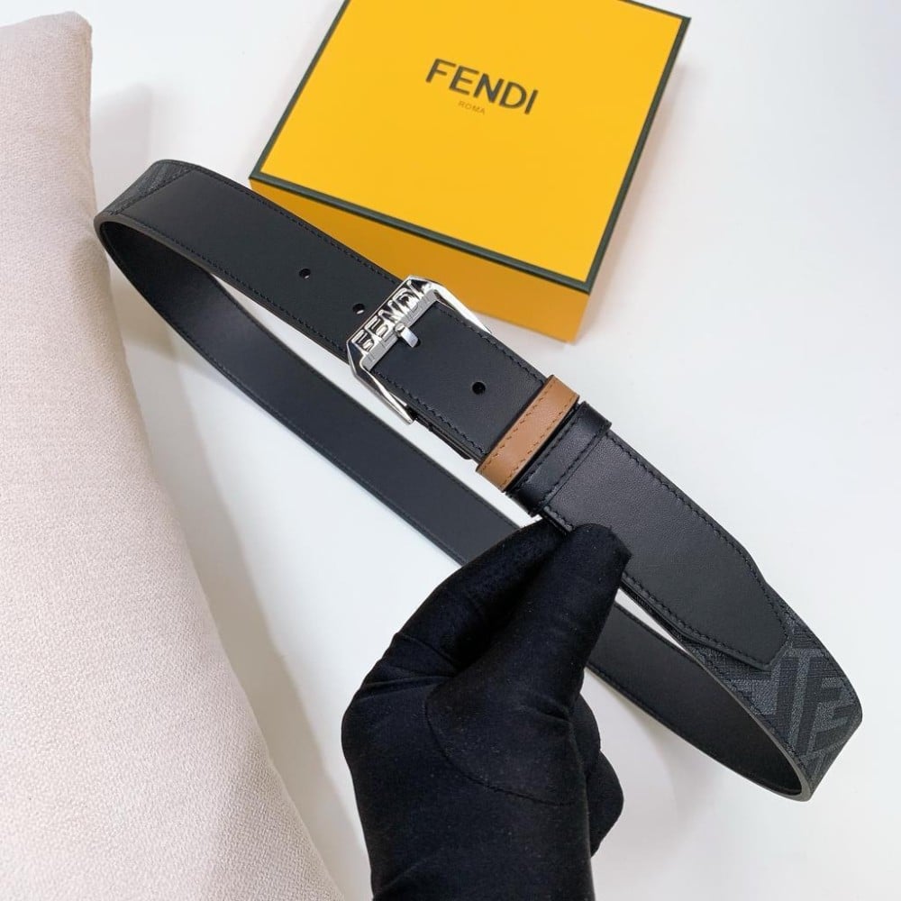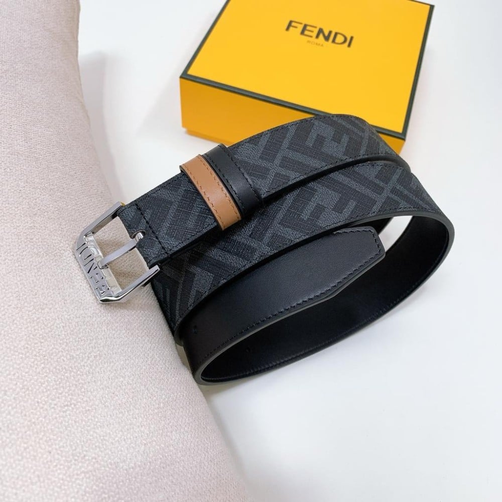 حزام رجالي بوجهين من فيندي لون اسود مع نقشة العلامة