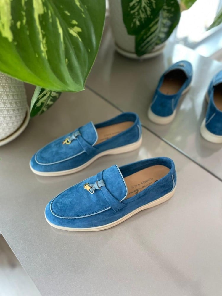 فلات شوز الشامواه النسائي من لوروبيانا باللون الأزرق الفاتح هو الخيار الأمثل للنساء اللواتي يبحثن عن الراحة والأناقة في آن واحد.