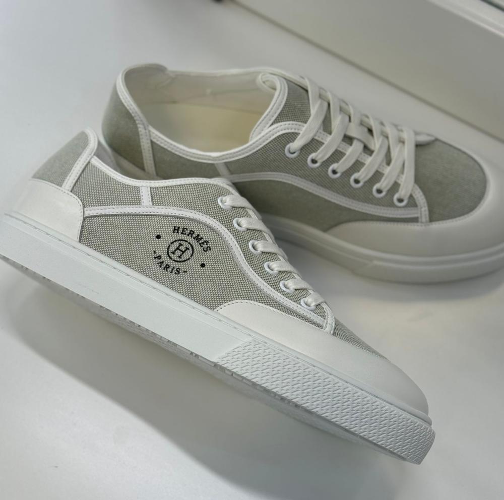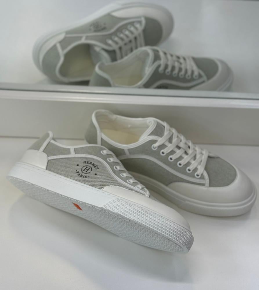 استمتع بالراحة والأناقة مع سنيكرز هيرميس الرجالي الرمادي والأبيض.
