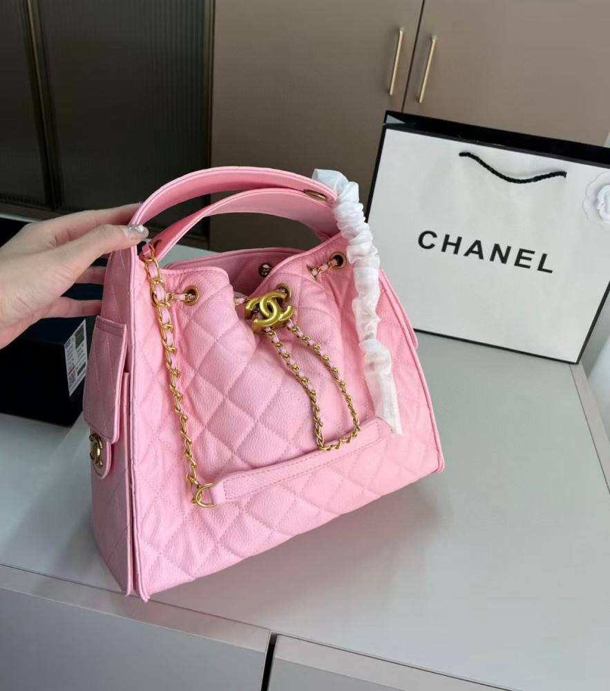 Add a touch of classic femininity to your look with this Chanel 25 bag crafted from luxurious leather in a soft pink hue. With its iconic design and sophisticated details, this bag lends unparalleled distinction to every occasion, whether for daytime or evening looks.