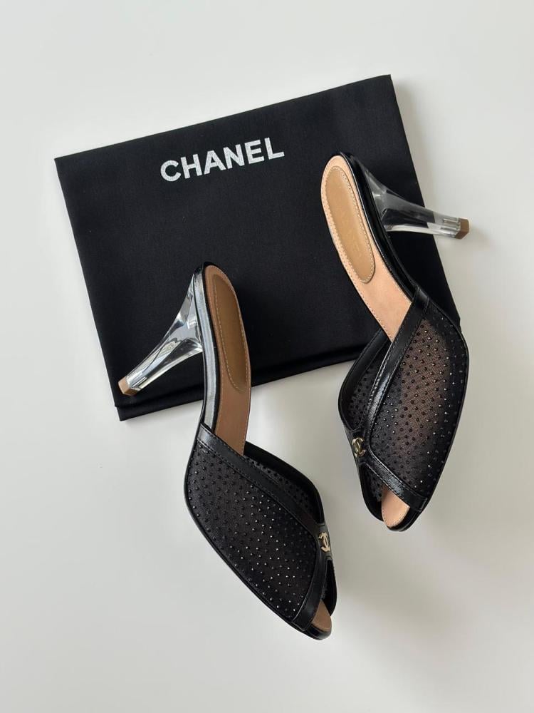 Elevate your style with these elegant black Chanel heels for women , adorned with luxurious rhinestones and featuring a chic transparent heel. A design that blends sophistication and modernity, they're perfect for evenings out and special occasions that call for a touch of refined elegance. The comfortable fabric and transparent heel provide stability and a radiant look with every step.