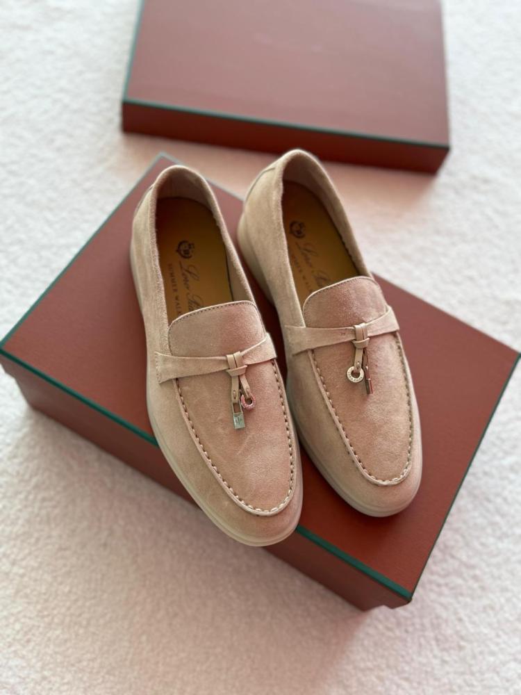 Loro Piana Women's Suede Loafer Walking Shoe in Beige