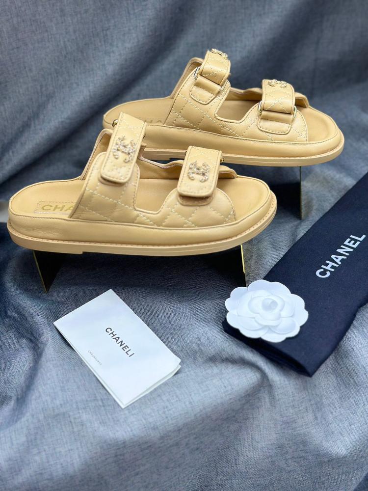 Discover the magic of femininity and elegance with the Chanel flat slipper, which embodies the beauty of the near-beige color with its elegant and feminine design.