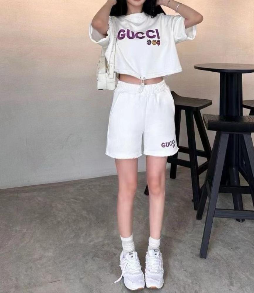 Gucci everyday shorts set with a white T-shirt with the brand's logo