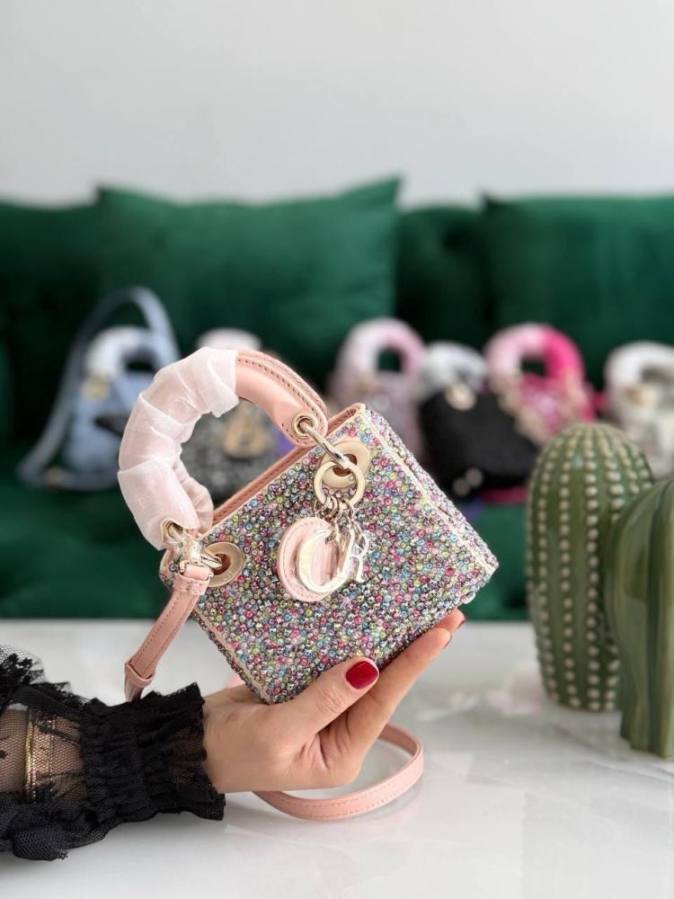 Dior Mini Suede Shoulder Bag with Handles and Multicolor Rhinestones