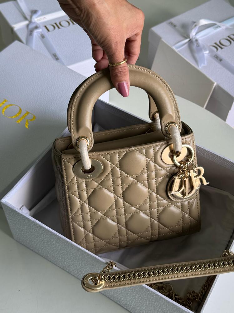 The 17cm Lady Dior Mini Bag in beige is a sophisticated piece that exudes femininity and luxury in every detail. Crafted from luxurious Cannage leather, it's embellished with gleaming Dior metal hardware, giving it an irresistible, iconic touch.