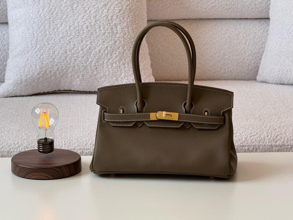 Stylish Hermes Birkin 30 bag in luxurious olive green and gold metal