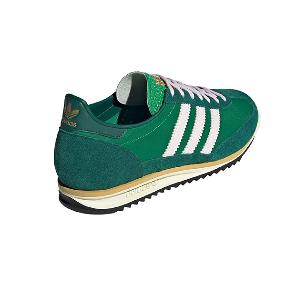 Discover sporty elegance with the Adidas Originals SL72 sneakers , reflecting a modern design inspired by the brand's iconic sports history. With its elegant green color and distinctive white stripes, this shoe is the perfect choice for those who love to stand out with every step.