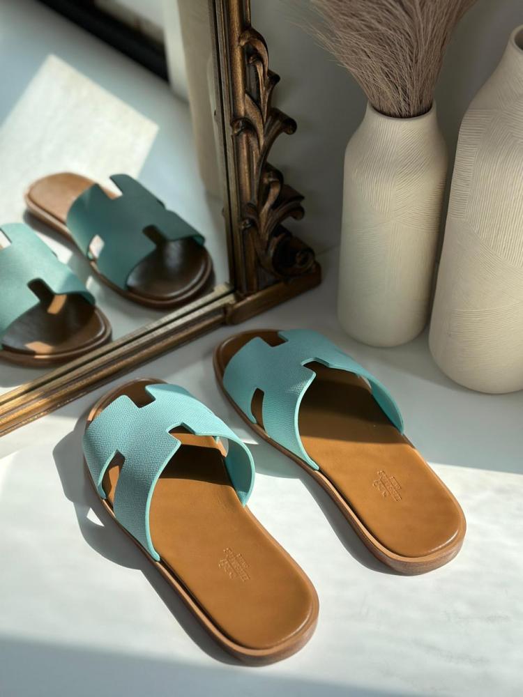 This elegant Hermès slipper features a luxurious design in blue and honey, giving you a distinctive and elegant look. Made from soft, high-quality leather, it provides exceptional comfort and excellent support for your feet throughout the day. This slipper is an ideal choice for everyday use or casual occasions.