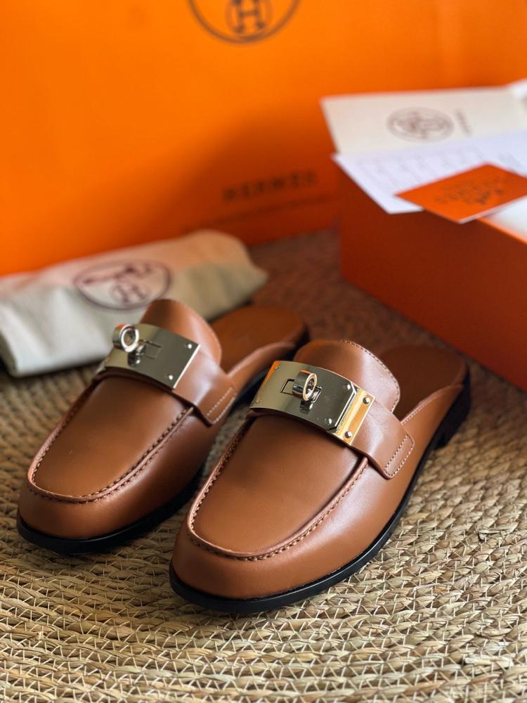 Add luxury and elegance to your look with the Hermès open-back flat slipper, crafted from premium leather. This iconic shoe exudes a style that blends simplicity and sophistication, making it the perfect choice for everyday outings or stylish, contemporary looks.