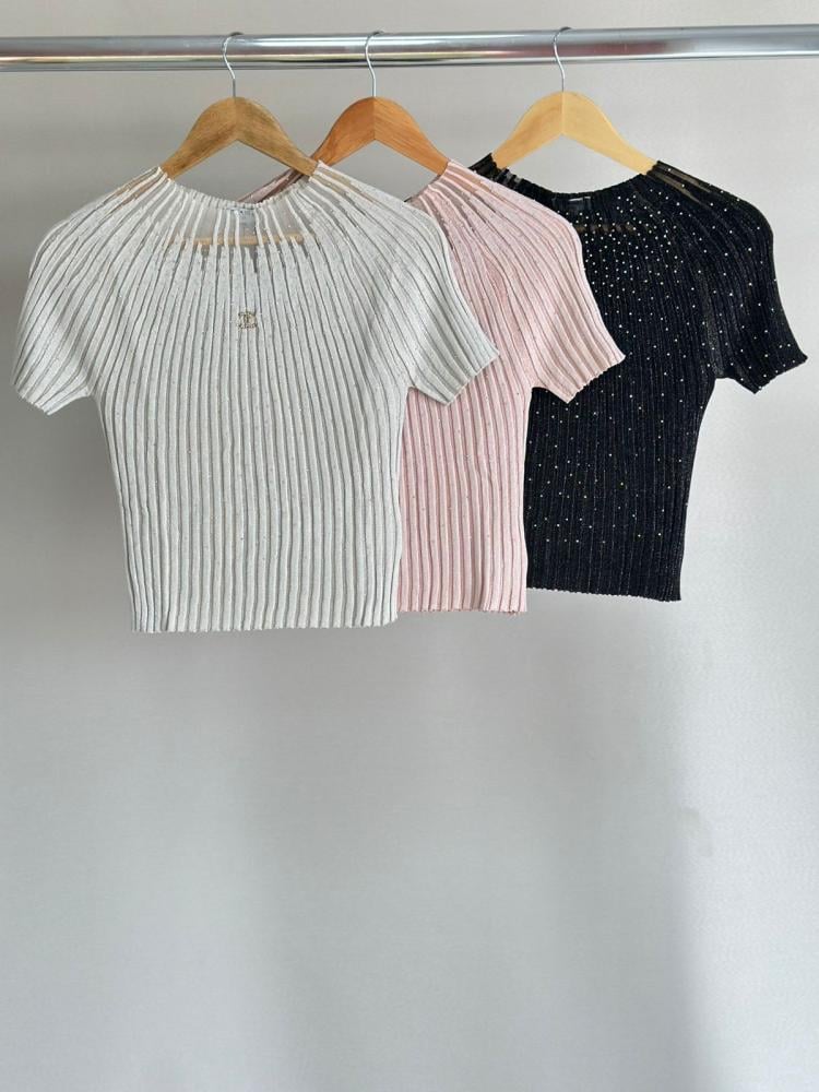 Chanel Women's Multicolor Half Sleeve Rhinestone Blouses