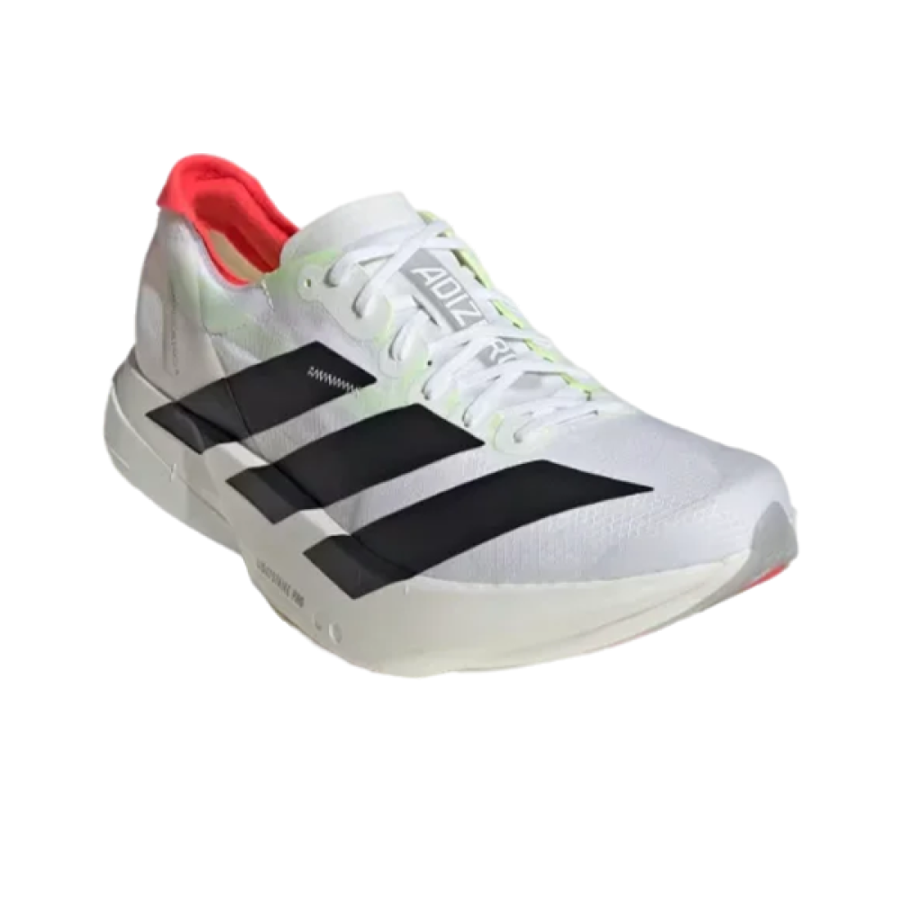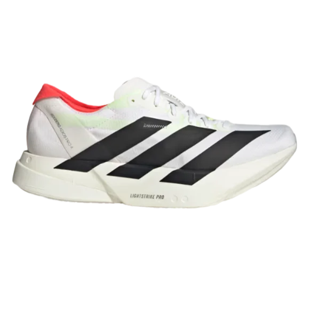 If you're a fan of combining luxury and performance, the Adidas Adzero Adios 4 offers a stylish, sporty design that combines supreme comfort with modern style in every detail. Its pure white look with black and red accents gives it a bold, eye-catching look, both on and off the track.