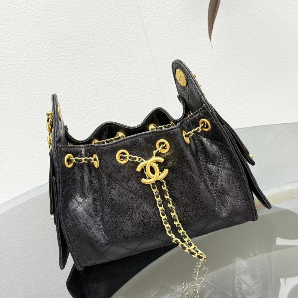 Chanel 25 Medium Bag 22cm Black with Gold Chain